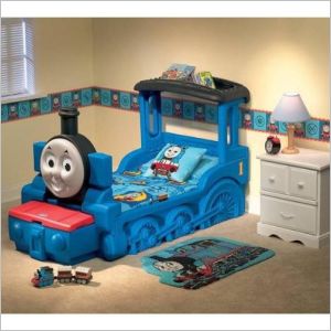What Thomas the Train transition bed you choose will depend partly on your budget. The Little Tikes Thomas the Tank Engine toddler bed is sturdy, comfortable and very fun, but it does have a pretty steep price tag. Still, you get what you pay for, and this bed can be used by your toddler for as long as he fits in it and then get passed on to any future siblings or to another grateful Thomas the Tank Engine fan. There’s a shelf above the head for your toddler’s favorite goodnight books—or his Thomas the Tank Engine story time collection—and the cow catcher is a little chest for keeping pajamas or special treasures. The sides of the bed are actually train tracks, ideal for driving a train set along during quiet hour—but you’ll have to make a rule about not doing that at bedtime!