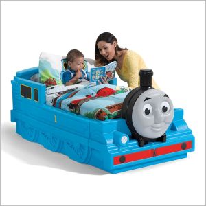 If you’d like a nice, high-quality Thomas the train toddler bed but you don’t have the cash you’d need for the Little Tikes model, Step 2 has a very nice Thomas the train bed for toddlers available as well. The storage compartment here is behind the engine’s cheerful, three-dimensional face. The bed can be set up in a jiffy, and will make naptime and bedtime much more fun—as well as providing a fun place for daytime play!