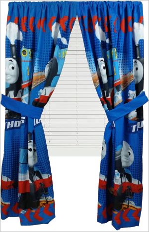 Thomas the Tank Engine room with a pair of dark blue curtainsAdd a final touch to your Thomas the Tank Engine room with a pair of dark blue curtains. These drapes are polyester and easy to wash, and at 42x 63 inches they’ll fit most bedroom windows. There’s something about curtains which change the atmosphere of any room, and these drapes will definitely make the room very much “Thomas”.