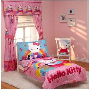 - For your little Hello Kitty enthusiast, there’s an ultra-cute bed in a simple, toddler friendly design available from Delta. This is another combination of steel and sturdy plastic, and since there isn’t a canopy to worry about this should be even easier to setup than the frozen bed. Although the weight capacity is 50 lbs, parents describe it as sturdy and say they are able to climb up next to their little daughters for bedtime story routines. Match this one with a colorful Hello Kitty 4 Piece Toddler Bedding Set, and your little kitty lover will have everything she could wish for in a bed.